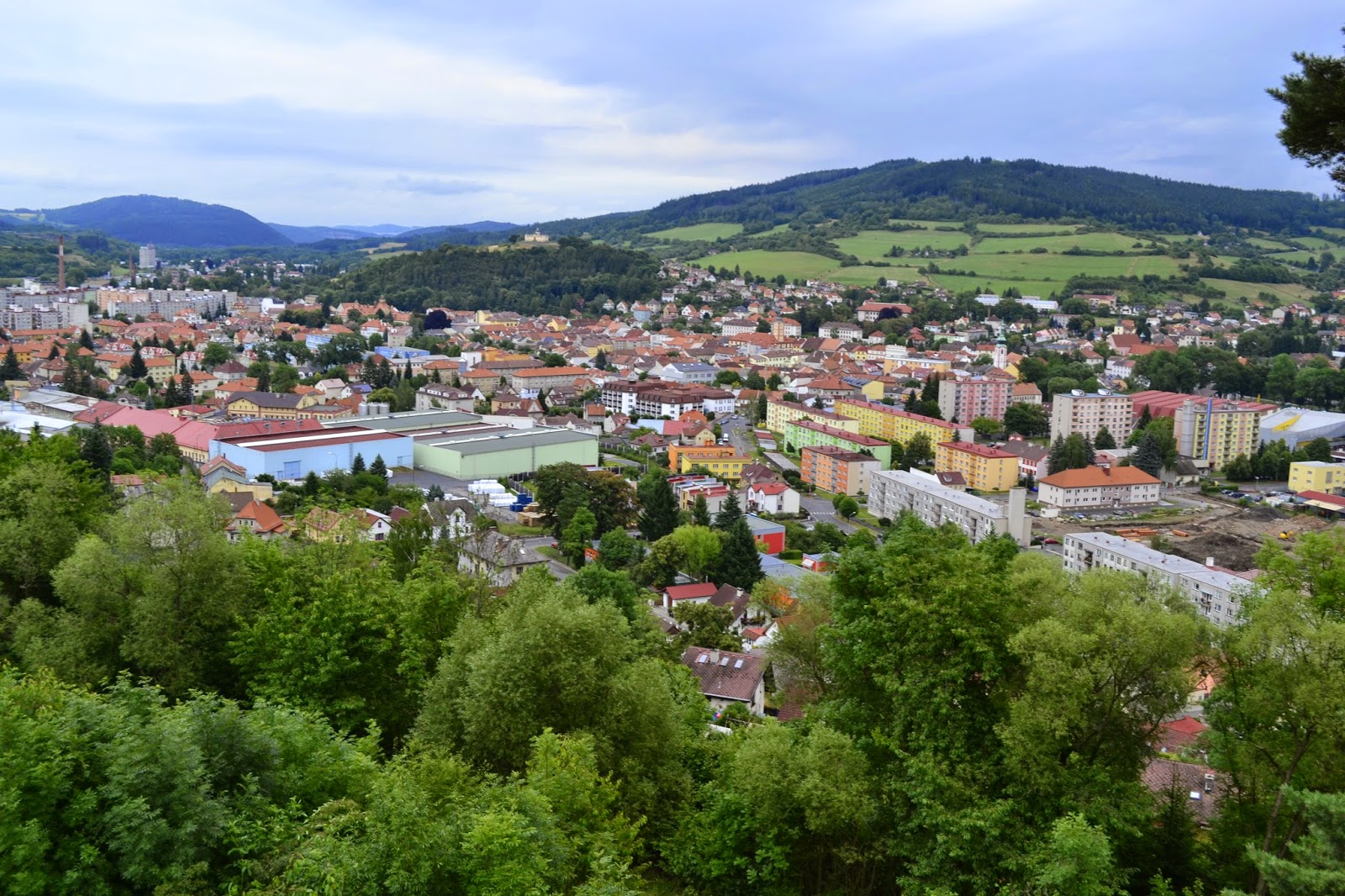 Jinou cestou než na vrchol se pouštím dolů. Nejprve musím kolo vést, až po chvíli nasedám a neomylně sjíždím na silnici, po které přes kopec dojedu do Neustadtu. Vesnic - dorfů už bylo dost, tak teď pro změnu Nové Město. Celým jménem se jmenuje Neustadt im Sachsen. Ze shora je na město pěkný pohled a dokonce vidím další rozhledny, které ještě navštívím. Projedu kolem centra, podjedu koleje a už si to šlapu do kopce, směrem na Hohenstein. Hned nad městem odbočím doprava, kde je opět restaurace, ale kovová rozhledna stojí tentokrát vedle. Rozhledna Götzinger höhe je postavena ve výšce 424 m n.m. a kruhovému výhledu už částečně brání stromy. Nejznámější výhledové body jsou Děčínský Sněžník a Ungerberg, který se tyčí přes údolí, východně. V dáli se táhnou Krušné hory.